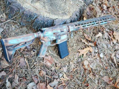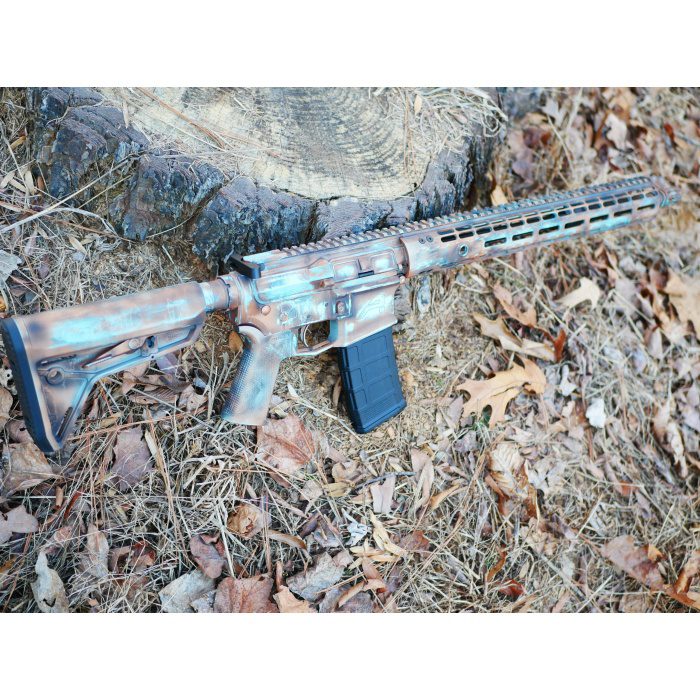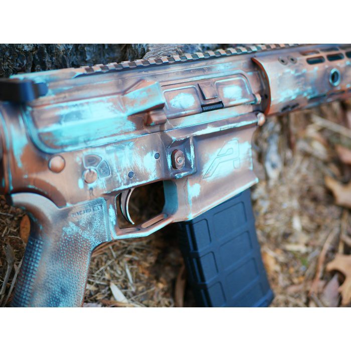If the name didn’t already give it away, this Kreation was inspired by the Statue of Liberty, but some of us around here think it looks a lot like old sunken treasure. What we all agree on, however, is that this thing looks stunning. Many hours of work went into achieving this aged patina look, and no detail was overlooked. All quality components were used throughout, including an Aero Precision M4E1 lower, M4E1 enhanced upper, a 15″ R-One enhanced handguard, 16″ Ballistic Advantage mid-length barrel, and Magpul SL furniture. Final assembly was all performed in-house by our expert armorers and tested to ensure proper functioning, and everything is covered by our industry-leading lifetime warranty. At only $1399, this is a one-of-a-kind blaster that you can be proud to show off at the range, while also not breaking the bank.